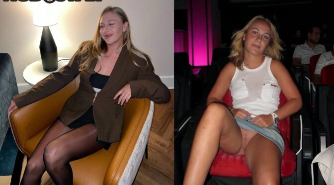 Amanda Anisimova shows off her vagina in public, looks like a legit teaser. Her breasts are great, her legs are sexy, she knows how to tease her audience.