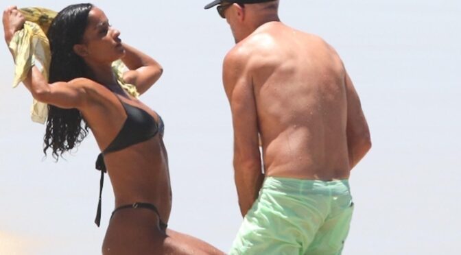 French actor and producer Vincent Cassel and his 29-year-old Brazilian partner, Narah Baptista, spend quality time with their son Caetano on the iconic shores of Rio de Janeiro at Ipanema Beach.